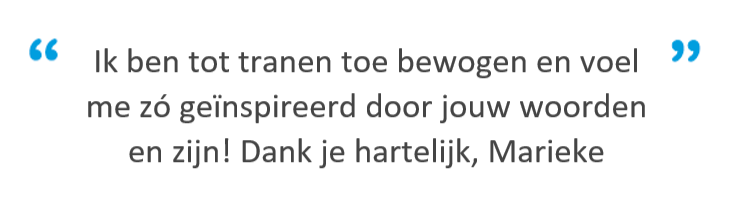 “Dankjewel Marieke om mij, via je boek, tot groot inzicht te brengen.